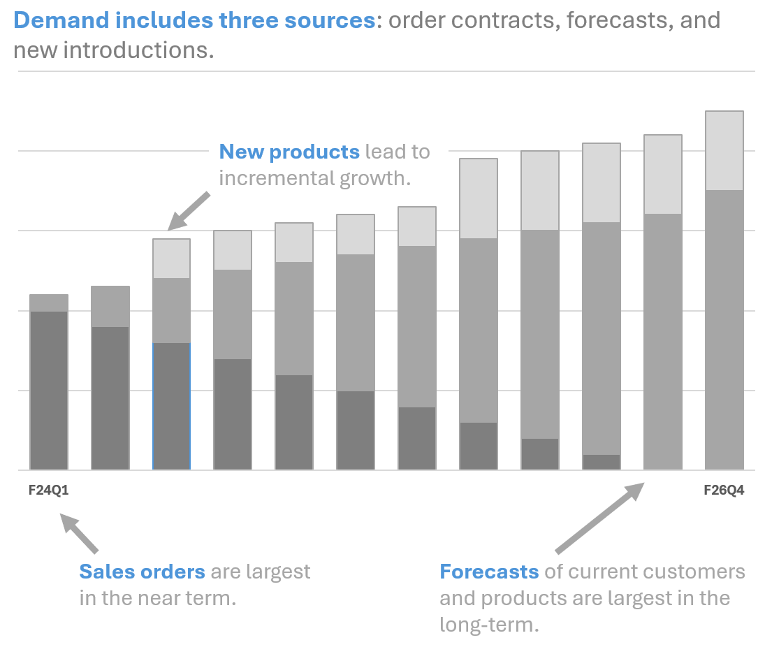 In the near term, your customers place orders for the products they need, so you can see that demand directly from the data in your business systems.